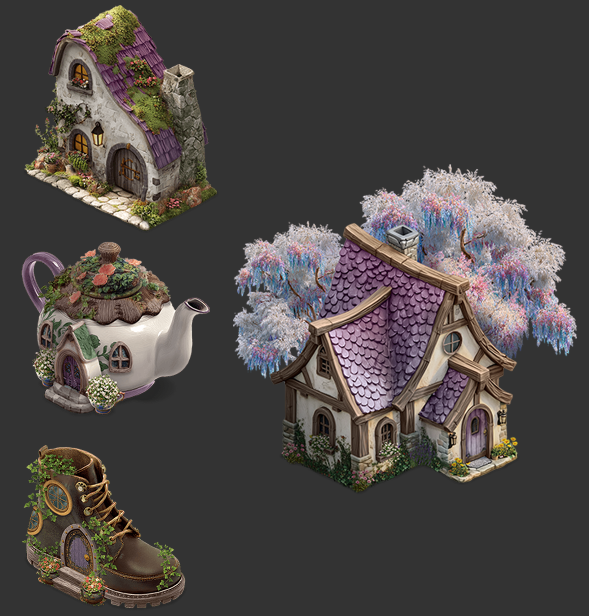 Creating isometric game assets for LiveOPS game in realistic rendering style.